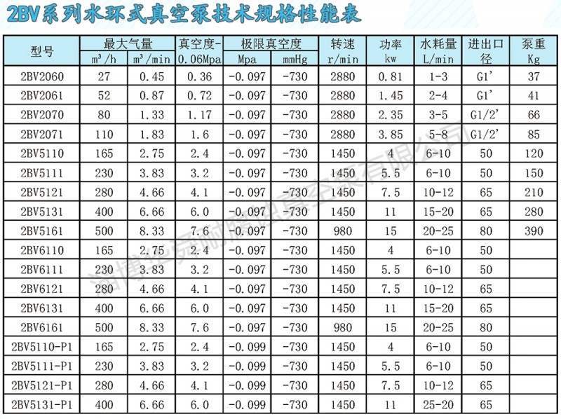 2BV系列真空泵是在我國傳統水環真空系的基礎上采用最新技術開發的升級換代產品。它采用機泵同軸直聯式設計,可靠性高,易于安裝和維護,比傳統真空系體積少30%。它運行平穩,暻音低于62分貝具有自吸能力,便于操作。因采用了無油設計,使它基本上免于維護,因為采用了機被密封,從而消除了泄潮。該泵配的氣水分商50%的工作液可循環使用,我少了污染,降低了運行成本。該泵采用青銅葉輪提高了泵的耐腐蝕性。根據用戶要求,采用不銹鋼材質,會在惡劣的環境下正常運轉。因而廣泛適用于化工、醫藥、食品、造紙鋼鐵等行業。